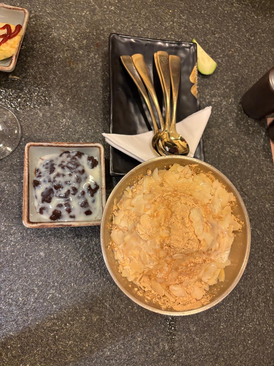 One of the highlights was the bingsoo (Korean shaved ice dessert) topped with sweet red beans and condensed milk - a refreshing conclusion to a flavorful meal. The restaurant also takes pride in their presentation, with gold utensils adding a touch of luxury to the dining experience.